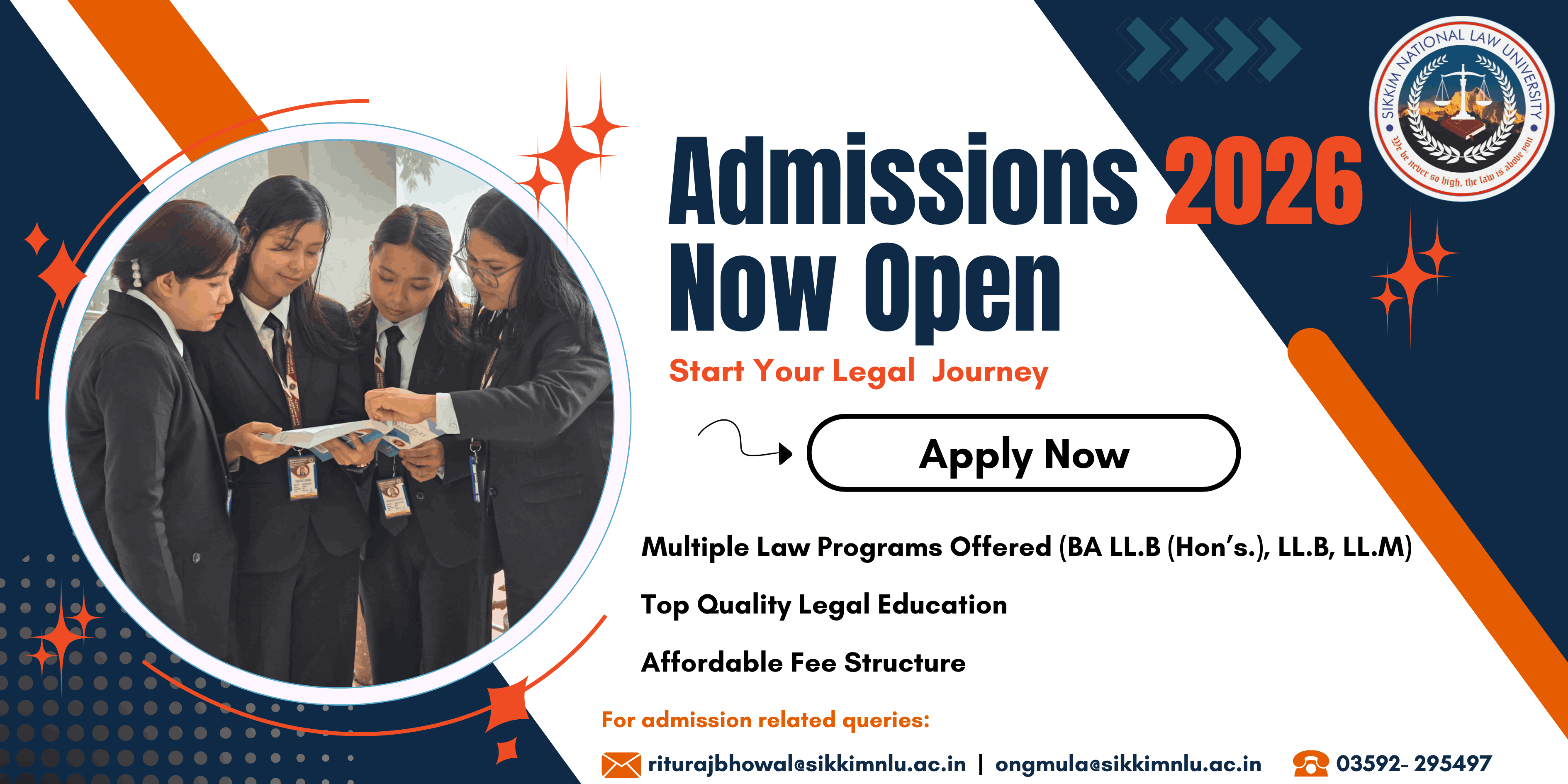 Is a National Law University (NLU) established in 2018 by the Government of Sikkim and is a premier institution dedicated to impart and provide top-quality legal education of national level excellence in the Himalayan region. Located in the serene and picturesque state of Sikkim, SNLU offers a conducive environment for students to nurture their legal acumen, explore new ideas, and embark on a successful career in the field of law.